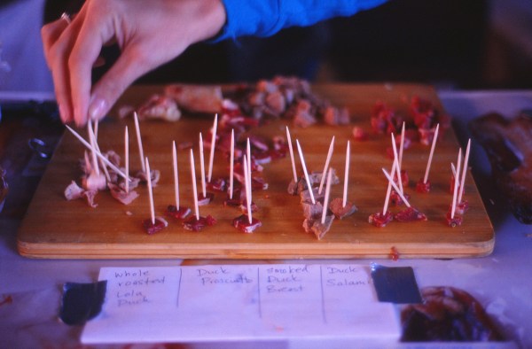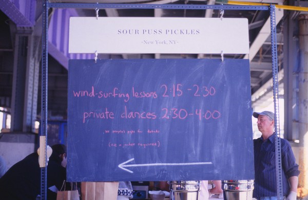 Other than the part where there was my office and weekend windowlessness, this past Sunday proved to be a most wonderful day: a morning walk across the Brooklyn Bridge, and then over to the New Amsterdam Market, where I met up with my friend Peter to try out the various wares. Duck prosciutto! Sullivan Street Bakery bread! Crazy infused salts! (In the photo second from the bottom, the salt second from the left was mixed with the famed ghost pepper — my word, what a way to start the day!) Porchetta sandwiches were on hand, but I had my heart set on Luke’s Lobster, though I opted for the crab roll instead of the usual lobster roll. Such a wonderful, bracing, buttery treat.