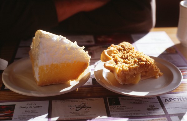 Then again, these weren’t exactly mundane eats: two rounds of hot dogs and a huge basket of excellent, twice-fried fries at D’s Six Pax & Dogz; biscuits, sausage gravy, eggs, and home fries (me) and eggs & corned beef hash (Dan) for Saturday brunch at DeLuca’s; a saucy half-sausage, half-cheese, tavern-cut pie at Sir Pizza that was incredibly reminiscent of childhood pies at Shakey’s; and! the piece(s) de resistance: great slices of lemon meringue and dutch apple pie at Glisan’s, a restaurant way out in Markleysburg, PA, near the Ohiopyle region (more on that later). Yes, we drove an hour and a half outside the city for pie; what did you do last weekend?