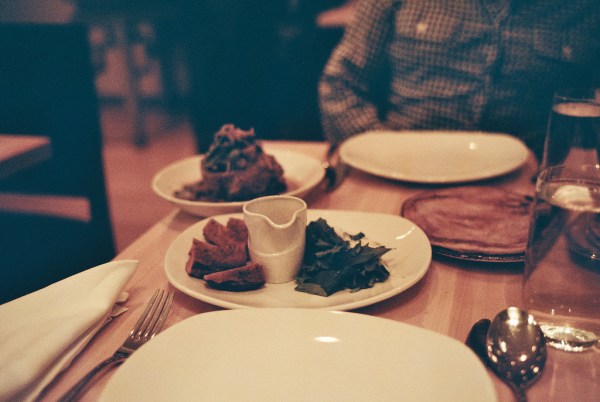 So … yeah.  We didn’t love it.  But the nice thing about sharing a meal, however disappointing, is that you’re sharing a meal.  Eddie and I, though longtime pals via the local, hadn’t ever gone out one on one before.  (There was a spectacular afternoon of multiperson dim sum and wine and fake angulas not long ago, but that’s another story entirely.)  And it was absolutely lovely!  Twas quite nice to talk about non-local matters, make plans for future fooding, and to laugh throughout the meal at our pre-dinner celebrity sighting: none other than Elvis Costello, looking so much like Elvis Costello that we thought there was no way it could be him.  The hat, the glasses, the scarf — everything.  Our hostess told us that he’d just finished eating at the restaurant when we ran into him outside on the sidewalk, talking on his cellphone.  I wonder if he was telling his wife about how sometimes, you just want a restaurant to be amazing.