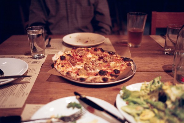 Since I know one of the folks who runs the kitchen, I’ll occasionally get an extra something or other to try out, like one of their new salads or desserts.  I’ve had most of their menu at this point, and it’s all pretty solid (though I have to admit, I’m more a fan of their tomato-based pies — but that might be a general preference sort of thing).   When my parents came to town a few weeks ago, we ended up eating there a couple of times, once for dinner and again for lunch before they headed off to the airport.  We feasted rather handsomely, gobbling down two different salads, the veal meatball and spinach pies, and ending our meal with an ice cream sundae topped with both peanuts and pomegranate seeds (delicious!) and their great banoffee pie.   And though I like eating at the bar, it’s such a fun, rare treat to sit at one of the tables and spread out a bit.  I don’t think it has the best pizza in the city — that honor goes to Patsy’s or Totonno’s, and don’t make me choose — but Co. is my favorite place to actually sit back and enjoy the pizza at hand.