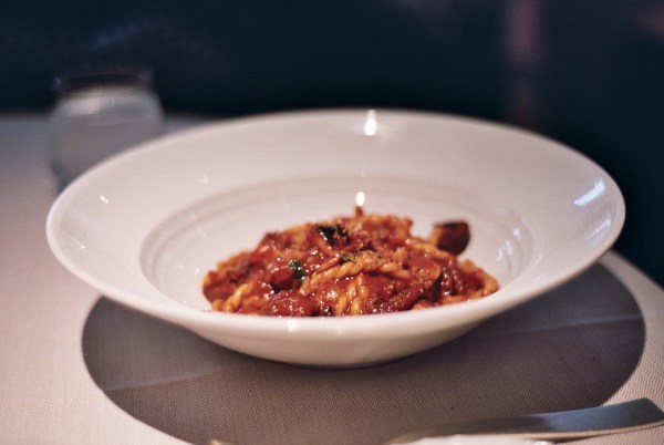 Below: Fusili with red wine braised octopus and bone marrow ragu, Marea, with the Nikon.
