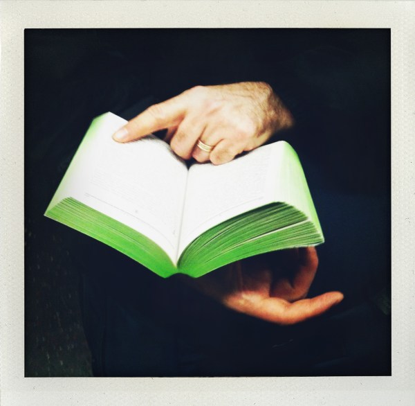 Last night on the subway home, I was standing next to a seated man with a green-gilded book in his lap. I almost never use my iphone camera for anything other than quick food snaps when it’s too dark to use my film cameras, and I certainly never take photos of random people on the subway, but there I was, trying to surreptitiously take a photograph of him sitting there right in front of me, quietly reading. And here it is. And I can’t tell if I think it’s awesome because it is awesome, or if it’s awesome only because an app has rendered it so. I don’t think a film camera (other than possibly an actual Polaroid) could have captured this as well as the iPhone did — and, more to the point, I don’t think I would’ve even attempted to take this with a film camera, unwieldy manual lens be damned. And now I find myself reveling in the pleasures of an image whose technological provenance I’ve spent the better part of the last six months quietly raging against.
