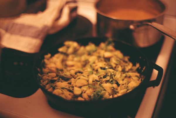 This past Friday night we had our first proper house dinner since my newest housemate moved in a few months back. We whipped up a lovely dinner of spicy dal, curried brussels sprouts with cucumber raita, and brown rice, with dark chocolate and Belgian beer to follow. And, of course, a gentle fire and lively conversation. With a wee snowstorm swirling outside, it was a perfect way to hunker down inside and decompress from the first week of the new year.