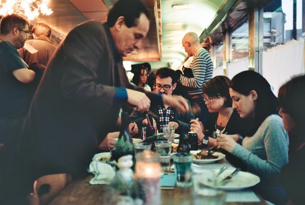 This Tuesday evening, a few of us headed to M. Wells Diner in Long Island City for a long-anticipated dinner. Though I’d been a number of times before for breakfast and lunch, I hadn’t yet been to the restaurant since they started their dinner service a few months ago. And then Sam Sifton gave them a glowing review in the Times, which was great for the restaurant, but not so good in terms of trying to get a reservation. But when Mike confirmed his NYC vacation plans, I called up the restaurant and made a reservation for a month in advance. A month. For dinner in a diner car.