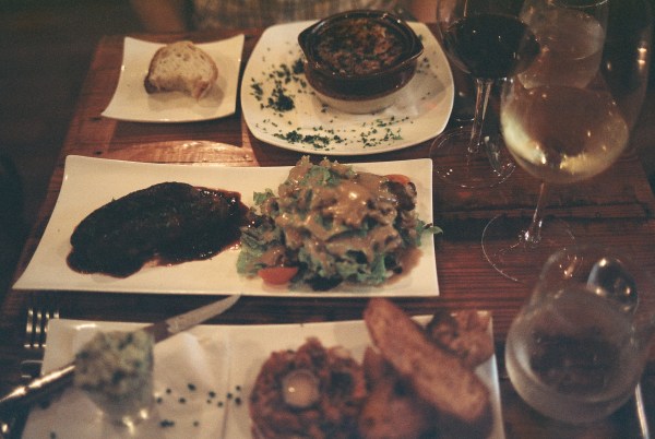A few Sundays ago, my friend Peter invited me out to dinner at Gentleman Farmer, the French-American spot on the Lower East Side that had just received a very favorable writeup in the New Yorker. Peter was intrigued by the description of the bison tartare, but in the end, that dish proved to be the only disappointment — the bison meat was cut a bit too thick for tartare purposes, and so ended up a touch chewy. Everything else, though, was great, from the french onion soup, to the venison sausage with blueberry (!) reduction, to the ostrich steak with rosemary potato gratin — all interesting and nuanced preparations that didn’t feel heavy or autumnal, despite the potential gaminess of it all. And the glass (er, maybe two) of Gruner that I had was just short of spectacular. It’s a tiny space — 25 seats, tops — so come early or be sure to make a reservation. But it’s totally worth it.