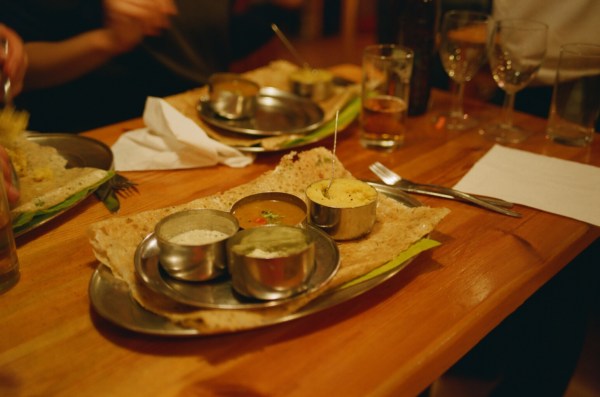 Balancing out those insane meals were differently amazing vegan meals with my London hosts, Lupe and Al, who made a great cauliflower curry and dal one night, so much food that we had leftovers for lunch the following afternoon. On another night, they took me out for completely wonderful south Indian food at Diwana. We feasted on various fried appetizers and then demolished our dosas with reckless abandon. So, so good.