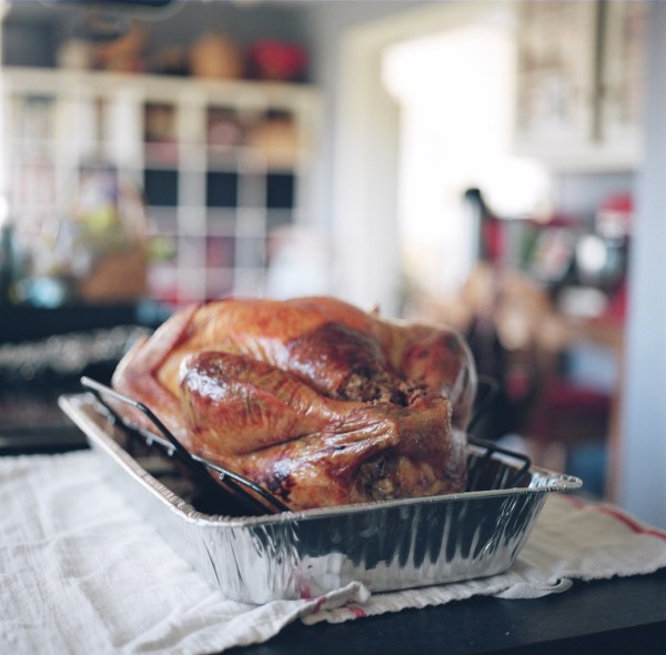 Earlier in the day, as we were waiting for the incredibly large turkey to finish roasting, I took some photos of Matt and his wife Irene, using a special extension tube fitted onto the Hasselblad that enables the camera to take closeup shots (and without the $3k-5k price tag for a proper portrait lens). As always in these moments, the tables were turned and Irene got a shot in of me as well. Throw in photos of the turkey and of Lady B enjoying her meal, and I’d say the day was an all-around gastronomic and photographic success.