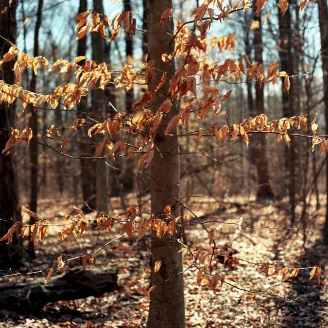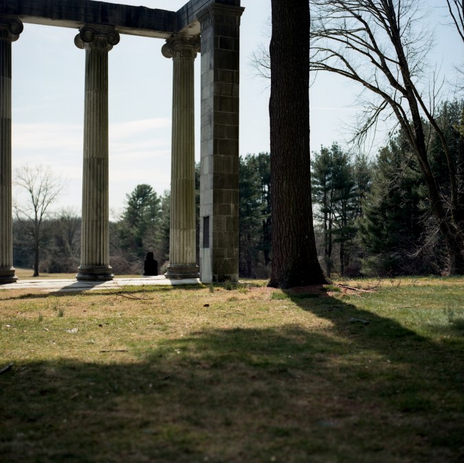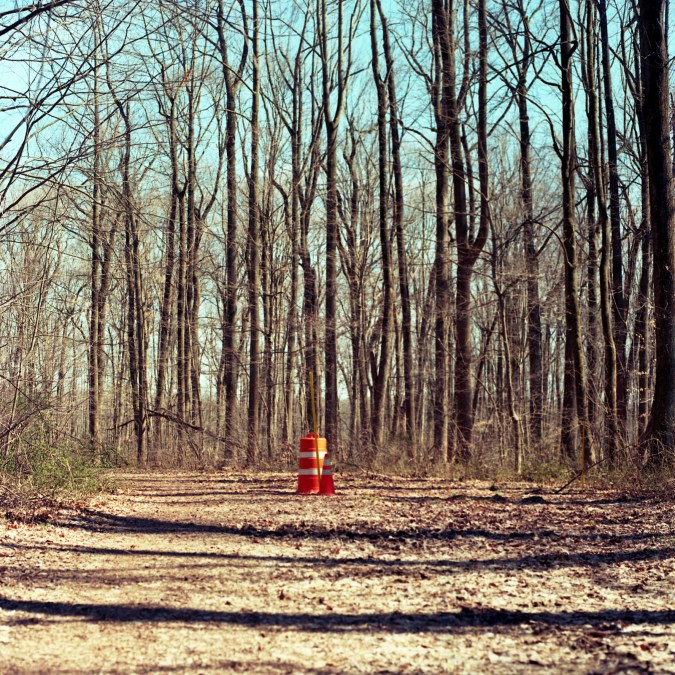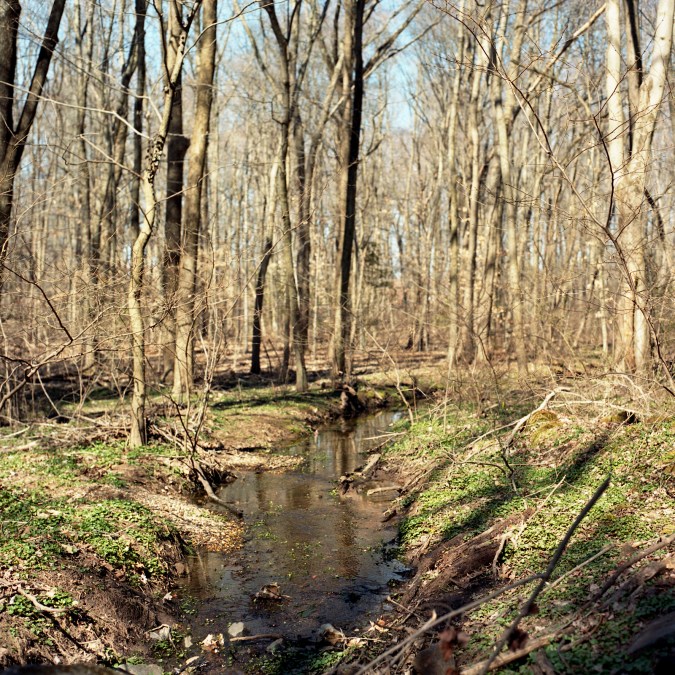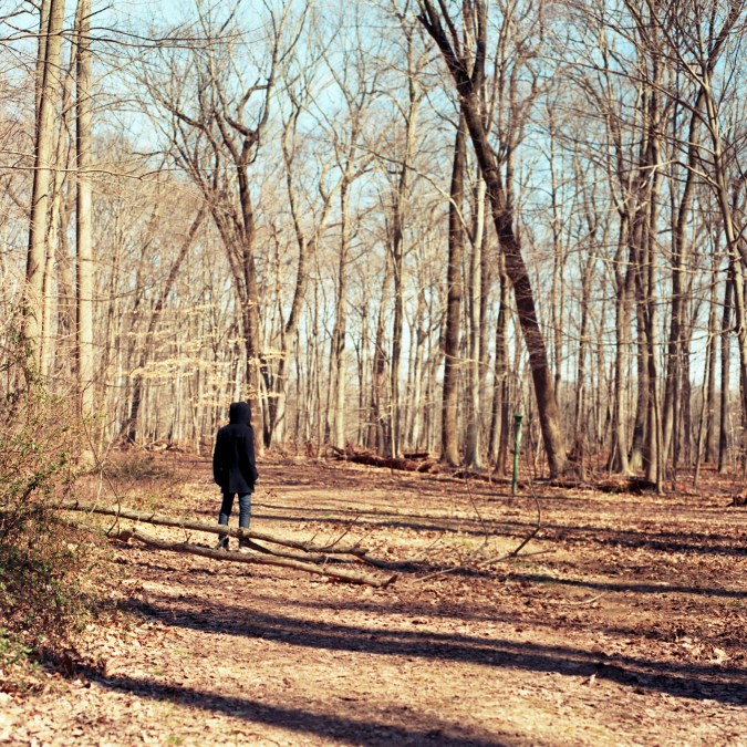 On the grounds of the Institute for Advanced Study, in Princeton, NJ, is a wooded area with a few wide trails — nothing you could get lost in, but just big enough to feel like a proper midday excursion. With the Hasselblad in tow, as well as with too many film varieties to maintain any visual consistency, we set out after breakfast on a long walk, the quiet punctuated with the occasional woodpecker rat-a-tat in the near distance. Perhaps it’s because I’m in the middle of Geoff Dyer’s Zona, a meditation on watching and rewatching Tarkovsky’s Stalker, or maybe it’s because my own intrepid guide looked the part — but looking at these photographs now, there’s something much more focused, more determined, than I think we had intended. When we finally got to the ruins, did we find what we were looking for? In the bright midday sun, everything seemed much too obvious and apparent to be real, the answers at once right at hand and clearly not what they seemed. (Ruins? In Princeton?!). Tarkovsky would’ve been proud.