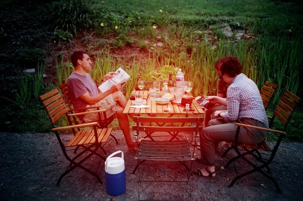 Sometimes the risks pay off in inadvertent ways, though. Last night, while consuming that aforementioned pot of rice, I looked through a bunch of older photos I had taken last summer during a weekend trip up to my friend Bernard’s country house in Walton, NY, and discovered a couple rolls of film I had originally cast aside since they’d turned up with strange light leaks. Looking at them now, I sort of like the way the photos feel — almost as if we’d been followed by a ghostly presence, making itself known in the oddest of moments (HEEEEY R!) and casting a slightly eerier mood to an otherwise pretty carefree, relaxing weekend upstate.