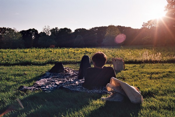 When I got off the train on Sunday afternoon around 5pm in Princeton Junction, the sun was casting a glorious, warm glow across just about everything.  By the time we got to the house, prepared to head out again with picnic blanket and wine, the clouds, grumpy and grey, decided to make an appearance.  We crossed our fingers and waited for the sun to reappear.  In the meanwhile we threw the blanket down on a nice patch of green stared up at the sky and drank wine from a single glass — the second one had broken en route to our destination, an avenue of trees beside a wild meadow of brush.
