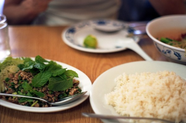 If you’re still hungry, the larb and the nam sod are good bets too.  Spicy, but not too much so, and a bit of rice will help cool things down anyway.