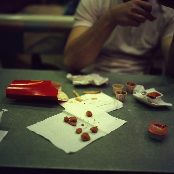 [Mike, I should point out, is not as grumpy as being photographed under fluorescent lights while eating Spicy Chicken McBites might otherwise indicate. His brow is perennially furrowed, regardless of his mood.]