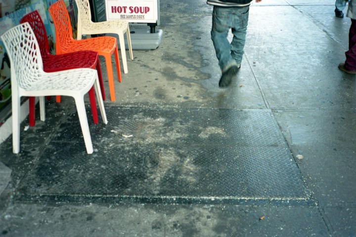 I needed to take a quick test roll to make sure everything was working properly, and much of yesterday was overcast and glum, and I mean, it’s not like there’s much to photograph when you work in midtown Manhattan, so the end results of said test roll were limited at best*, but: good times, my friends. You just snap a photo, just like that! No fiddling with that focus ring! It’s CRAZY. Also: the camera fits in my coat pocket. NUTS.