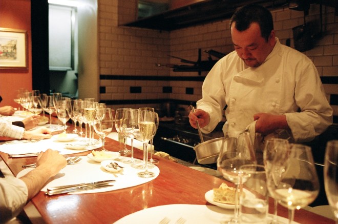 On Wednesday night, we went to Amoroso, a great (well, quite tiny) place run entirely by one guy, chef Maeda-san. Seriously, it’s an 11-seater counter space and he alone preps, plates, and presents all of his Japanese-inflected Italian dishes, with exceptional wine pairings (he started out as a sommelier). He’s amazing, and the food is spectacular.