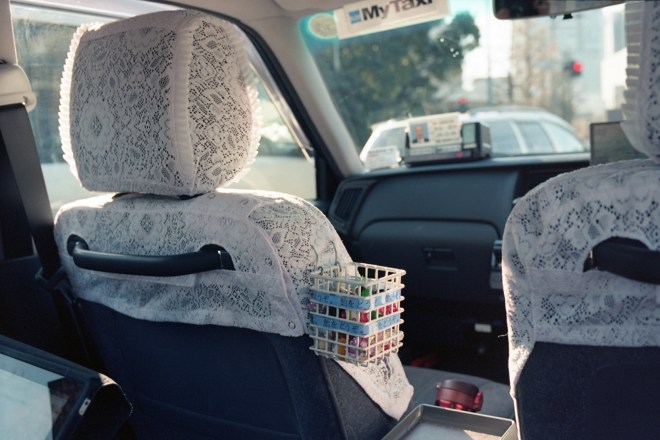 Above: Potted plants! Below: One cabbie offered free candy. (And yes, all the cabs in Tokyo have doily seat covers. For reals.)