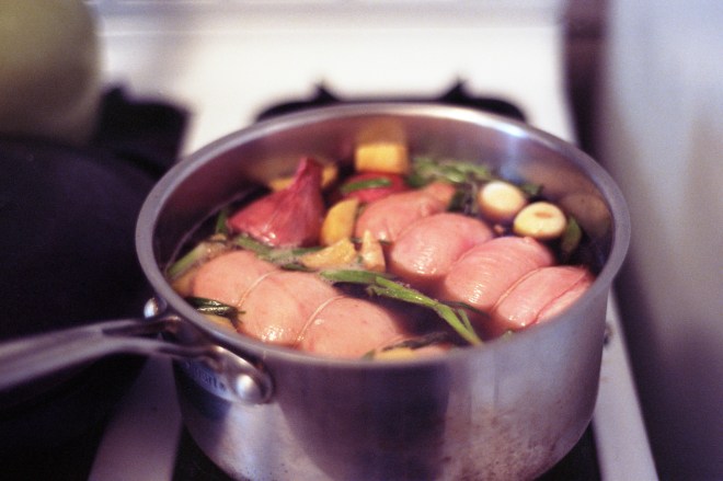 The weekend before I left, I also made some miso ramen, with chashu pork. From scratch. (Well, everything but the noodles, which were fresh from Sun Noodles in NJ.) I was pretty pleased with the results, I have to say.