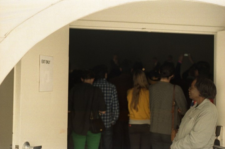 So we headed up to Long Island City early that Sunday morning, and got to PS1 just before noon, as both the restaurant and museum were opening. The lunch was great. Not so great: the ever-growing crowd assembled to see the band, who had started their epic set inside the giant white dome on PS1 grounds. Mike and I, we’re not so good with crowds. And during lunch, we could hear the song play over and over again as it was. So we stuck around outside the dome to hear ‘Sorrow’ one last time, and left without going inside. But hey! I managed to sort of get a photo of the band. Sort of.