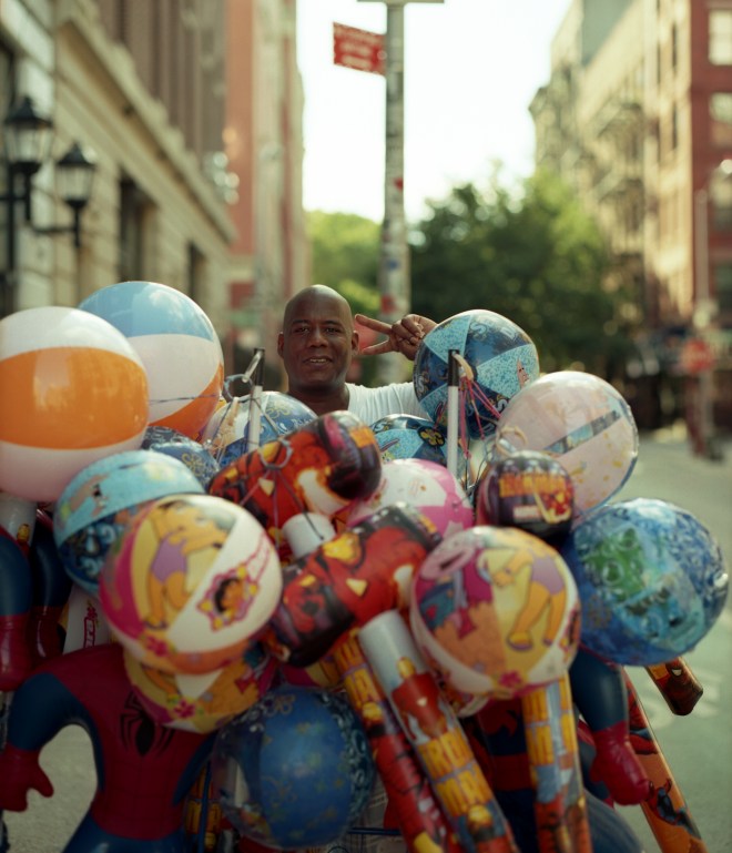 I took quite a few photos with the Pentax 6×7 over the long holiday weekend. These two, of a balloon man we encountered on the street and my dear friend Michael, taken a few hours apart on July 5th, were my favorite of the lot.