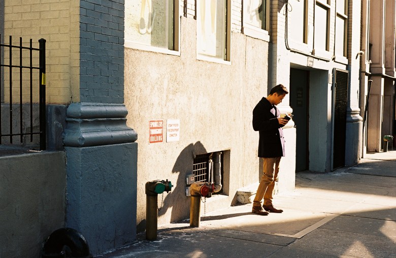 It was a sunny but brisk Sunday, just the wee-est bits of spring poking around. Olivia, Nick, and I wandered around the East Village, down along the edge of NYU and Soho, and finally to the Lower East Side, with our cameras in tow. Though I have shot with film since entering the digital world, it was for a client, and not for my own edification. So, feeling like I needed to reconnect with analog, I brought my long-neglected Leica M6 with me. Nick offered up a roll of expired Kodak Ektar 100 — by far my favorite film stock — and voila!, some gorgeous, wonderfully saturated shots.