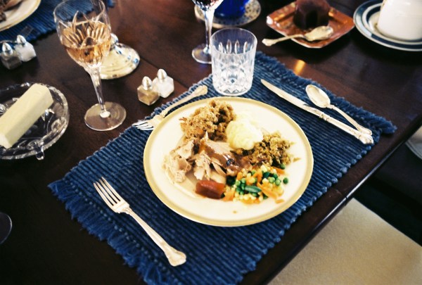 A few nights ago, my housemates and I threw ourselves a three-person, all-out holiday dinner, complete with pan-roasted chicken, oven-roasted root veggies, and mashed potatoes. And a couple of lovely bottles of red wine. Maybe a nightcap’s worth of bourbon. It was great, full of blustery conversation and clean-platedness, tiny kitchen notwithstanding. The Hasselblad + Polaroid back made an appearance early on and never quite left the proceedings. (Mental note: the Fuji 3000-speed instant film might be kind of amazing.)