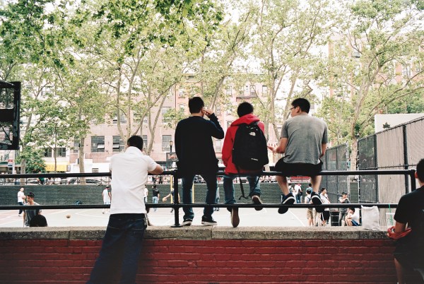 Around the corner from my house is this faded pink building — I think it’s a school of some sort. On Saturday, on my way to a picnic in Fort Greene Park, I snapped a few photo with Pony the Yashica, only to discover that I had quite misjudged the exposure (top). I took another shot, about five feet to the right of the first photo, only to discover when I got the film back from the lab that I’d overexposed it a touch. Alas.