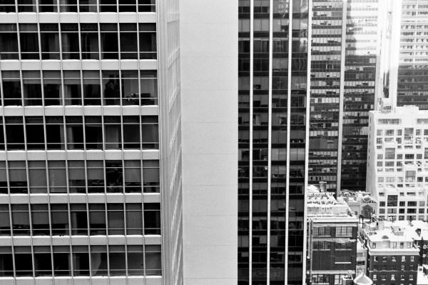 The last three photographs feel very 1950s to me, a New York of a bygone era. The top photo feels more sci-fi, like a futuristic cityscape of ever-diminishing windows. It’s also vaguely reminiscent of the Michael Wolf photo that my friend Daniel is looking at in this shot (only, well, nowhere near as amazing and dizzying).